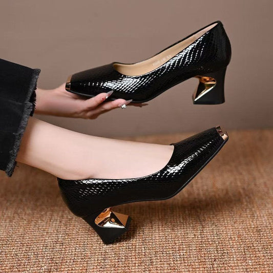 Zapatos de tacón grueso y suave con hebilla cuadrada