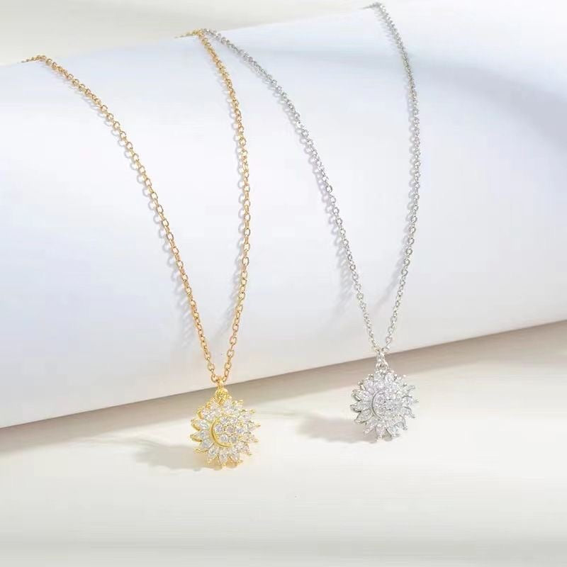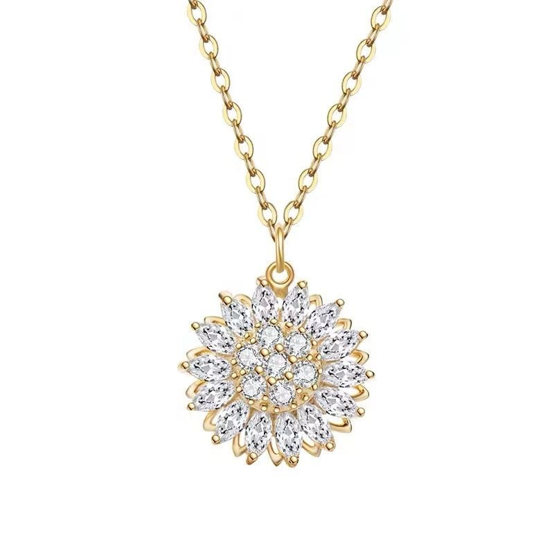 Este collar con colgante de girasol combina ingeniosamente "sol" y "amor". Los pétalos giratorios significan "la felicidad fluye, el amor nunca se detiene", como la dedicación desinteresada de las madres, que siempre nos llena de alegría.