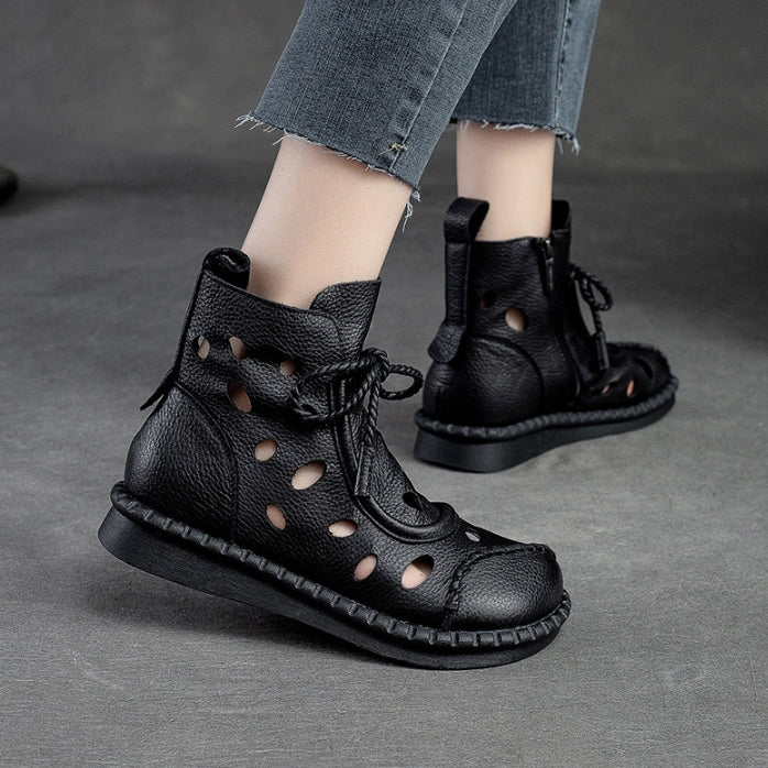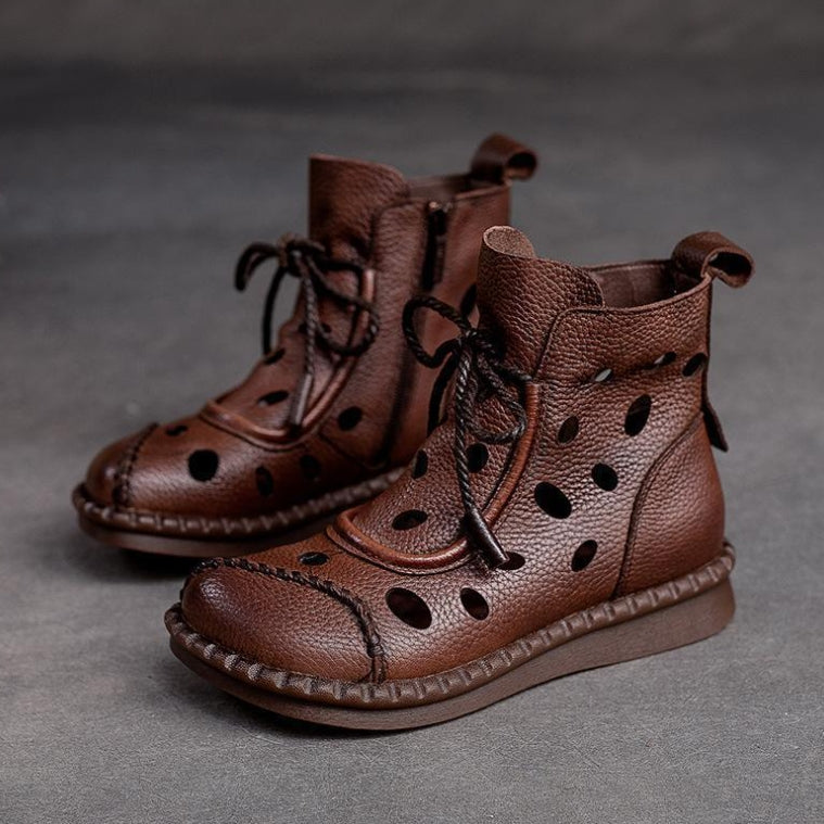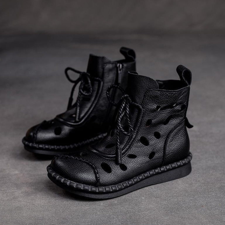 Botas retro de suela blanda huecas para mujer