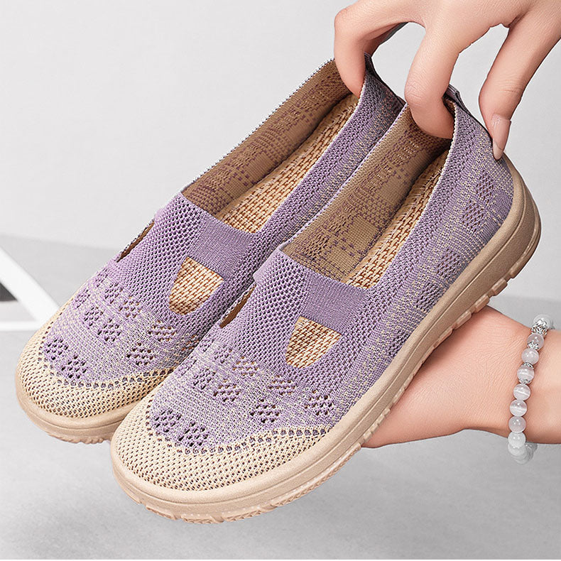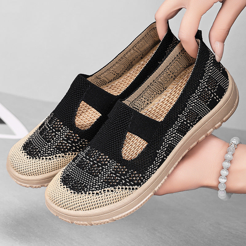Nuevos zapatos voladores tejidos a cuadros transpirables