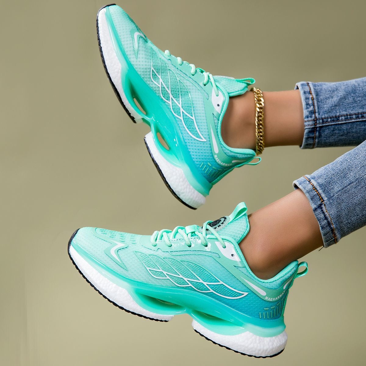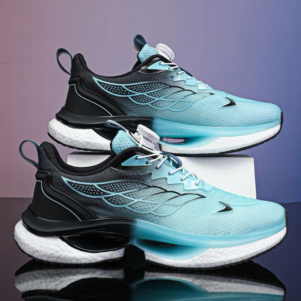 Patrón de engranaje aerodinámico, mejora la fricción del agarre, suela exterior a prueba de golpes con colchón de aire, disfruta de la sensación única y cómoda del pie.