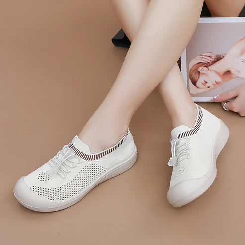 Zapatos de malla para mujer con punta redonda y cordón