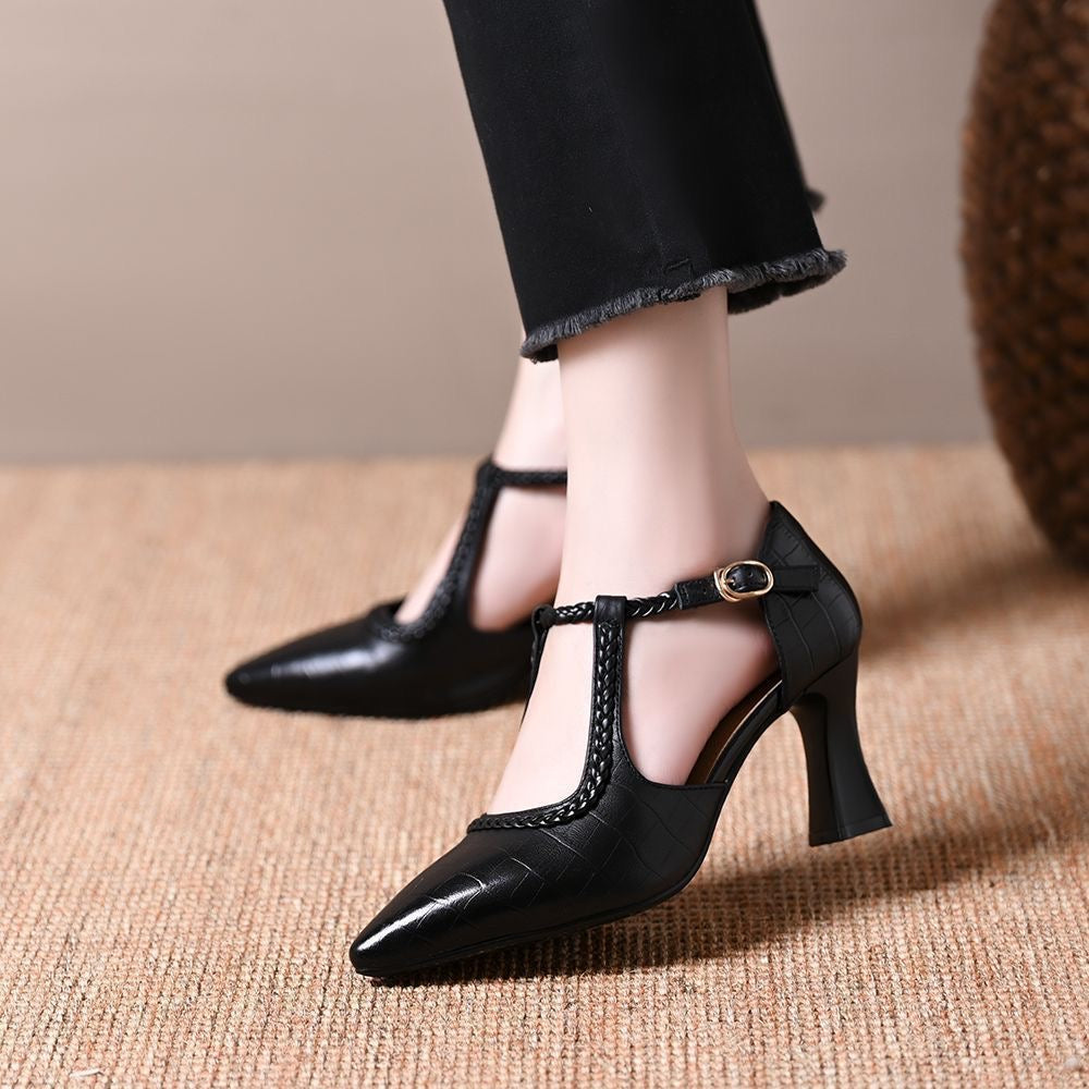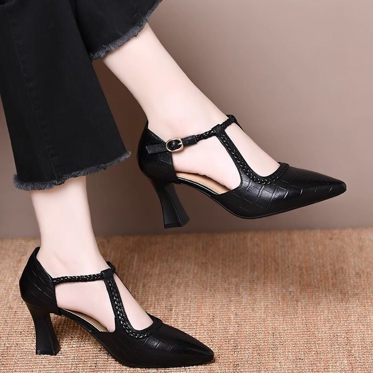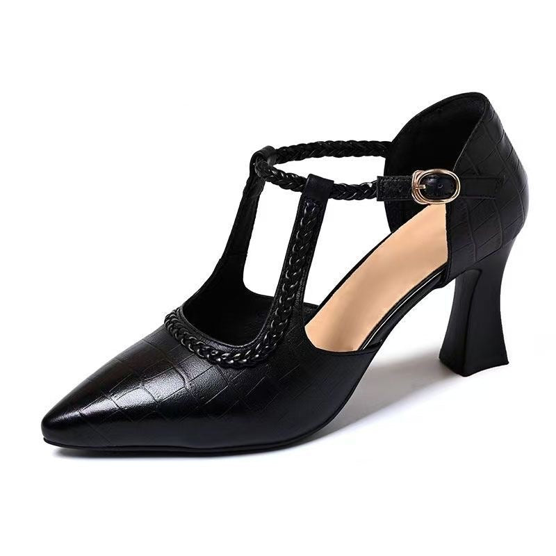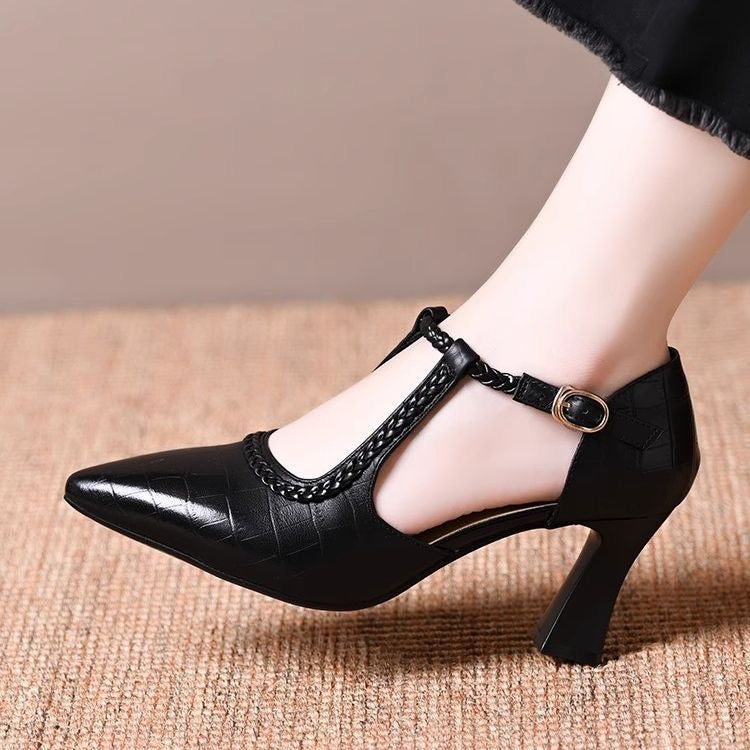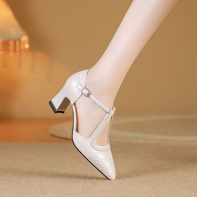 Zapatos retro de piel con tacón grueso